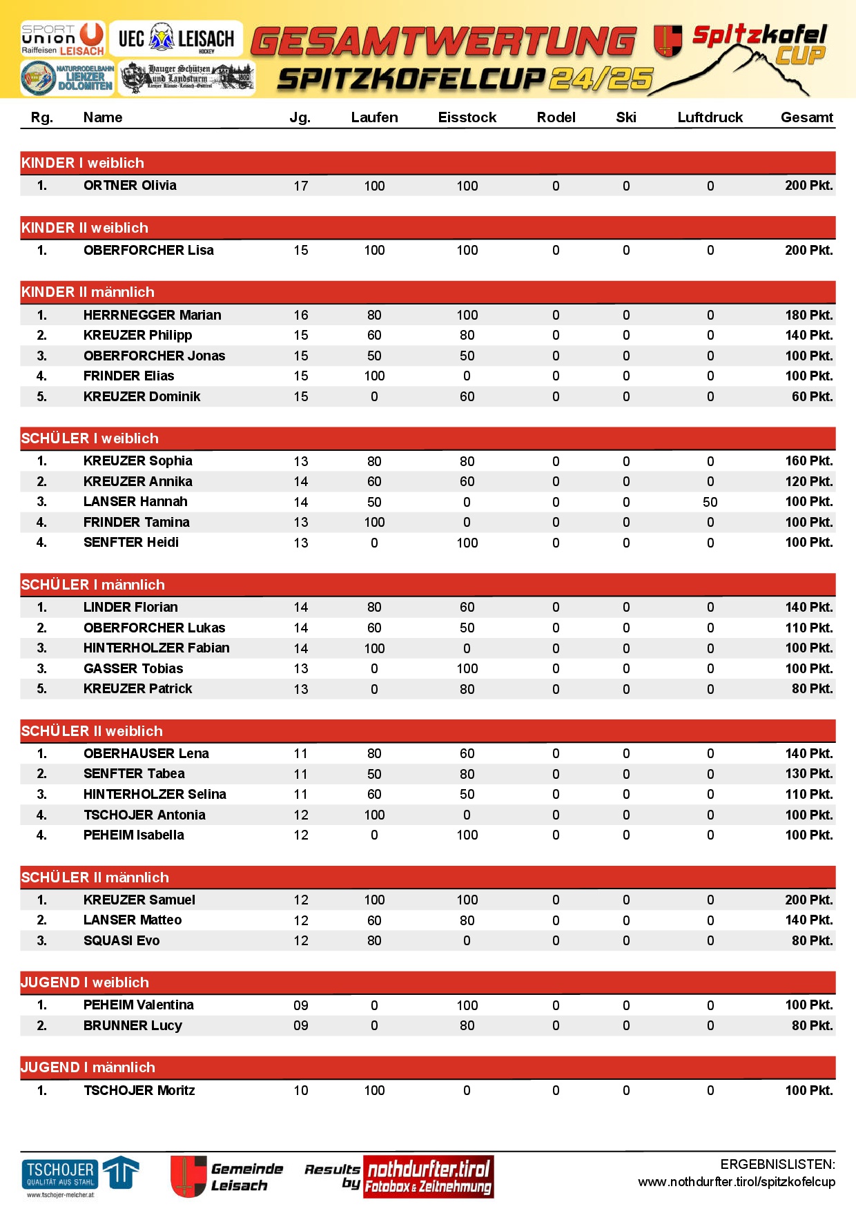 1. Spitzkofelcup GesamtWertung