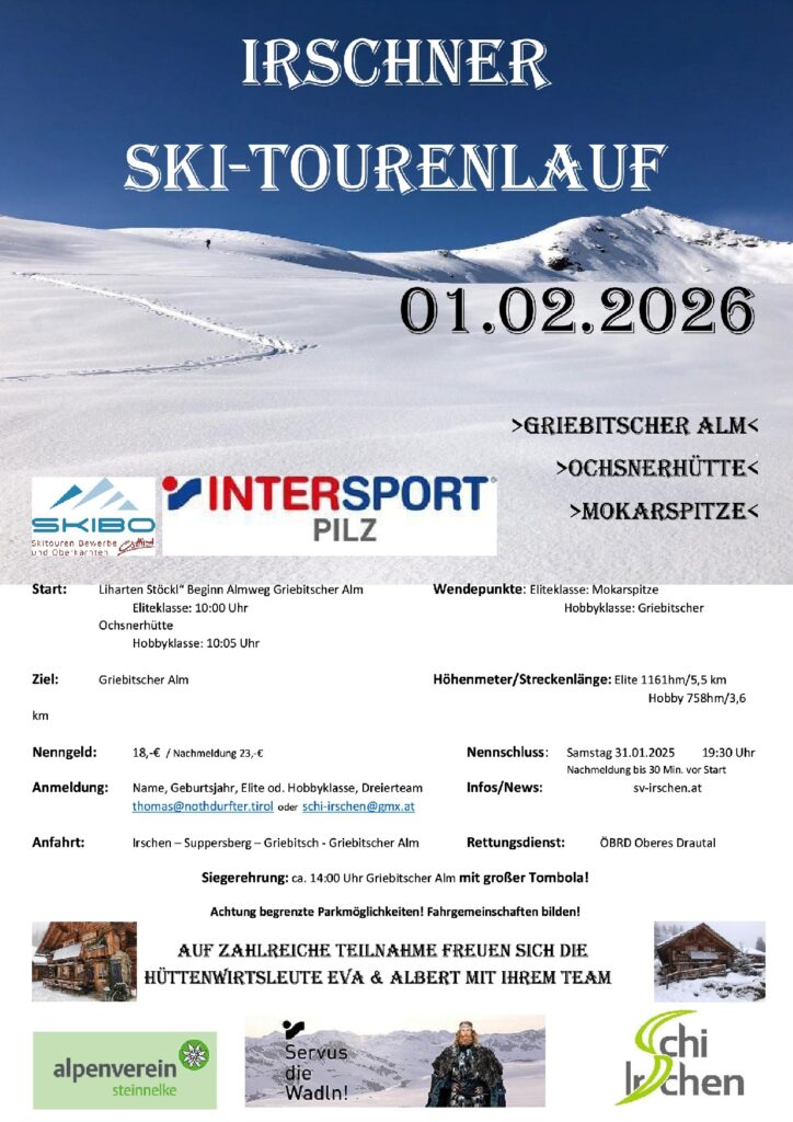AKTUELLE ERGEBNISLISTEN FeuerwehrRodelrennen14. Februar 2026 Nostalgie Hornschlittenrennen8. Februar 2026 Alpenrauterennen7. Februar 2026 Irschner Ski-Tourenlauf1. Februar 2026 4. Mannschaftsrodelrennen31. Januar 2026 ERGEBISSE 2026 ERGEBISSE 2025 ERGEBISSE 2024 ERGEBISSE 2023 u. älter